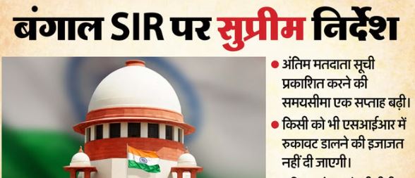बंगाल में SIR की समयसीमा एक सप्ताह बढ़ी, सुप्रीम कोर्ट ने अंतिम मतदाता सूची जारी करने का समय बढ़ाया, डीजीपी से मांगा हलफनामा