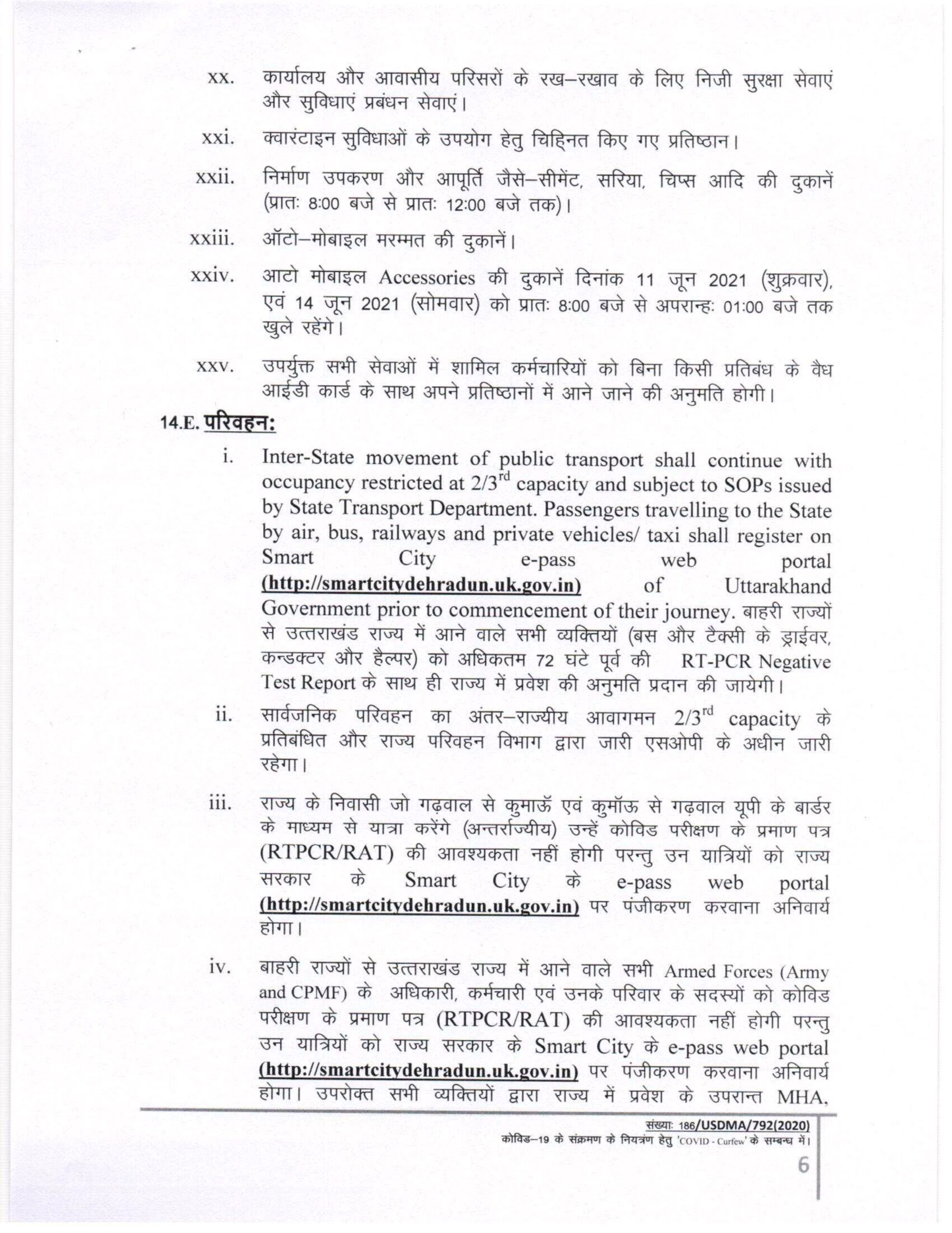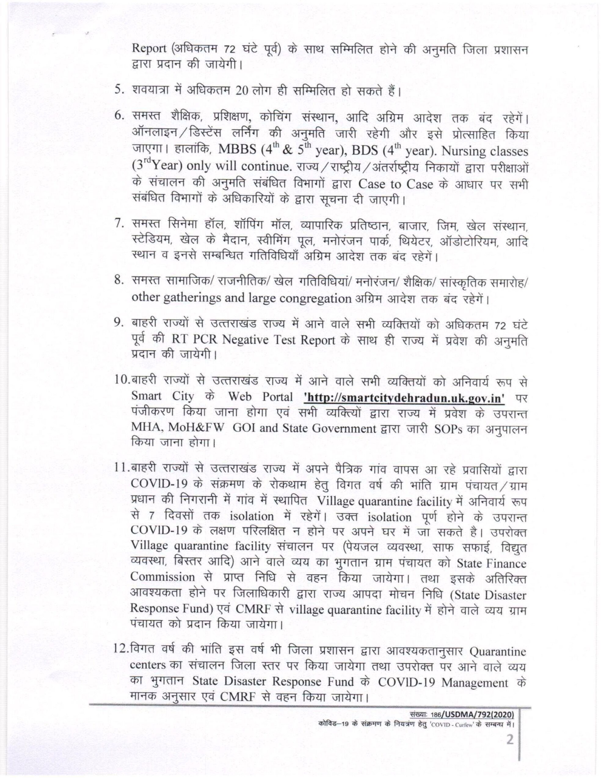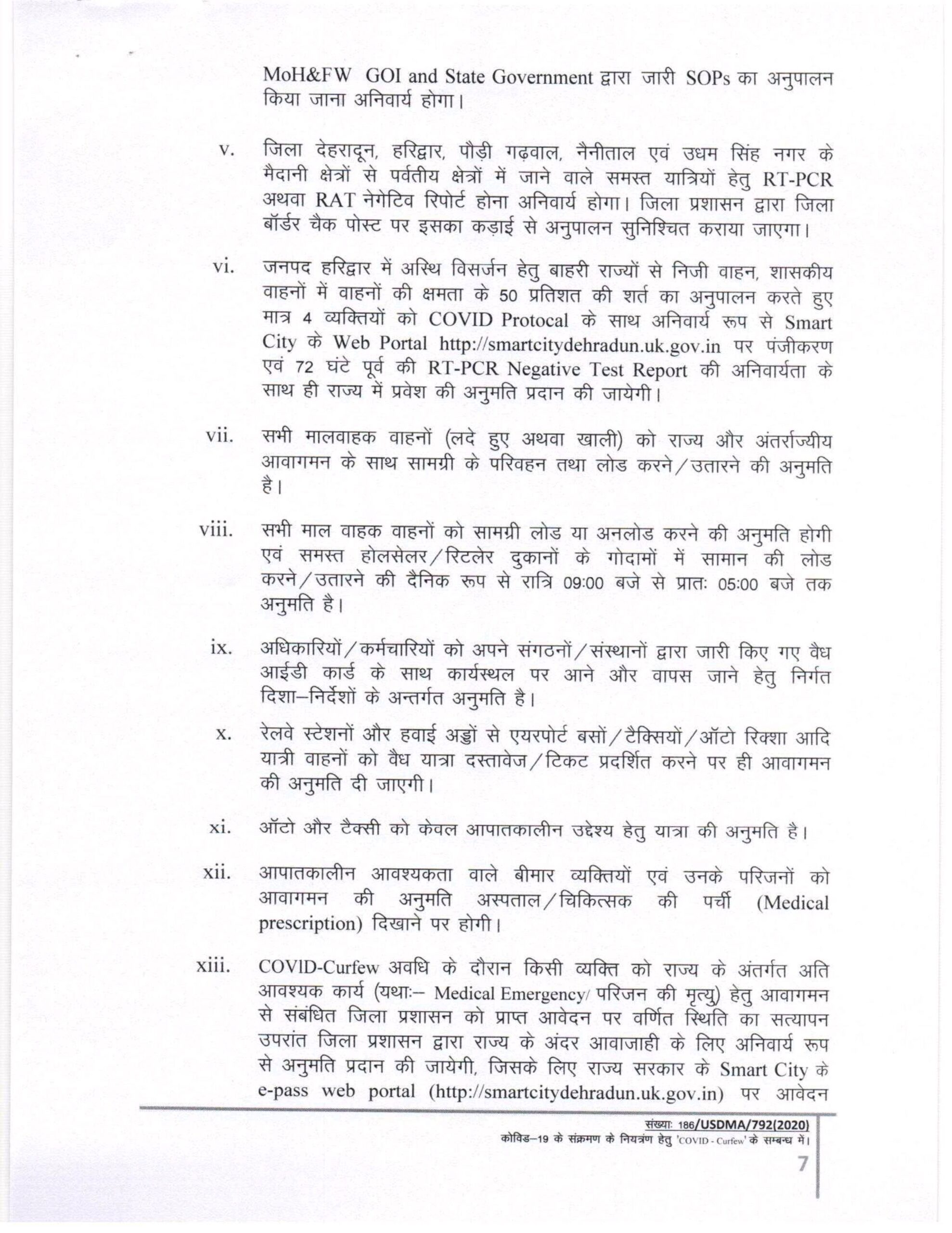 – गढ़वाल से कुमाऊं व कुमाऊं से गढ़वाल के बीच यात्रा करने वालों के लिए आरटीपीसीआर या रैपिड एंटिजन टेस्ट की आवश्यकता नहीं होगी। उन्हें स्मार्ट सिटी के ईपास वेब पोर्टल पर पंजीकरण कराना होगा।