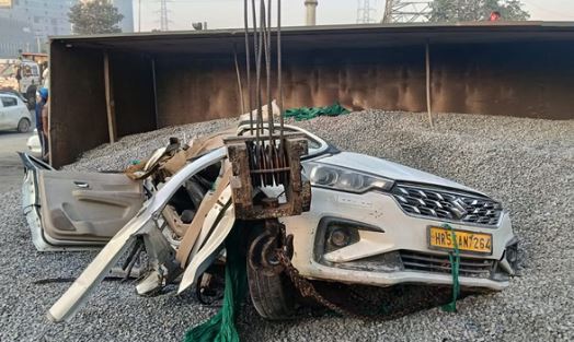 गुरुग्राम के सेक्टर-49/50 की रेडलाइट के पास रोड़ी से भरा ट्राला एक कार पर पलट गया। इससे कार बुरी तरह से क्षतिग्रस्त हो गई। हादसे में कार में चालक व अन्य सवारी दबने से गंभीर रूप से घायल हो गए। ट्राला चालक भी घायल है।