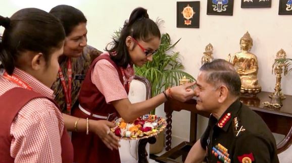 देशभर में रक्षाबंधन का त्योहार उल्लास के साथ मनाया जा रहा है। इस त्योहार पर बहनों ने अपने भाई की कलाई पर राखी बांधी। साथ ही भाइयों ने बहन को रक्षा का वचन दिया। यह दिन भाई-बहनों के प्रेम, रिश्ते, विश्वास और उनकी ताकत को समर्पित है। यह दिन रिश्तों सहित घर-परिवार और समाज में भी खुशियों की लहर लेकर आता है। रक्षाबंधन न केवल भारत का मुख्य पर्व है बल्कि कई अन्य देशों में भी इसकी खास रौनक देखने को मिलती है। रक्षाबंधन पर नई दिल्ली में थल सेनाध्यक्ष जनरल उपेंद्र द्विवेदी ने छात्राओं से राखी बंधवाई।