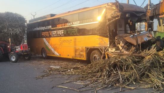 देहरादून-हरिद्वार राष्ट्रीय राजमार्ग पर नुंनावाला, भानियावाला में यात्रियों से भरी एक वॉल्वो बस अनियंत्रित होकर सामने चल रहे एक गन्ने से लदे ट्रैक्टर ट्राले से टकरा गई। जिससे बस चालक की मौके पर ही मौत हो गई। सूचना पाकर स्थानीय पुलिस और एसडीआरएफ की टीम मौके पर पहुंची। क्षतिग्रस्त बस में फंसे हुए चालक को एसडीआरएफ की मदद से बाहर निकला गया। इसके बाद बस के चालक और परिचालक को अस्पताल ले जाया गया जहां चालक को डॉक्टर ने मृत घोषित कर दिया। वहीं हादसे में परिचालक घायल हुआ है।