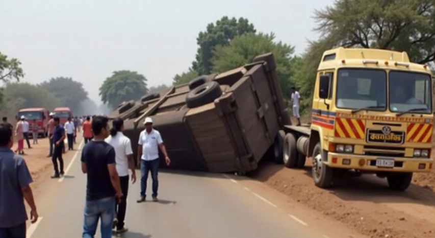 हादसा: चौथ माता मंदिर में दर्शन करने पैदल जा रहे श्रद्धालुओं पर पलटा ट्रक,3 लोगों की मौत, 8 घायल