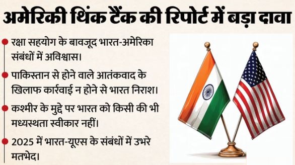 लिसा कर्टिस, कीर्ति मार्टिन और सितारा गुप्ता द्वारा लिखित इस रिपोर्ट के अनुसार, 2025 में भारत-अमेरिका संबंध गंभीर रूप से डगमगा गए थे। इसके पीछे भारत-पाकिस्तान के बीच हुए संघर्ष विराम को लेकर मतभेद और भारतीय सामान पर अमेरिका द्वारा लगाया गया भारी-भरकम टैरिफ जैसे मुद्दे शामिल थे।