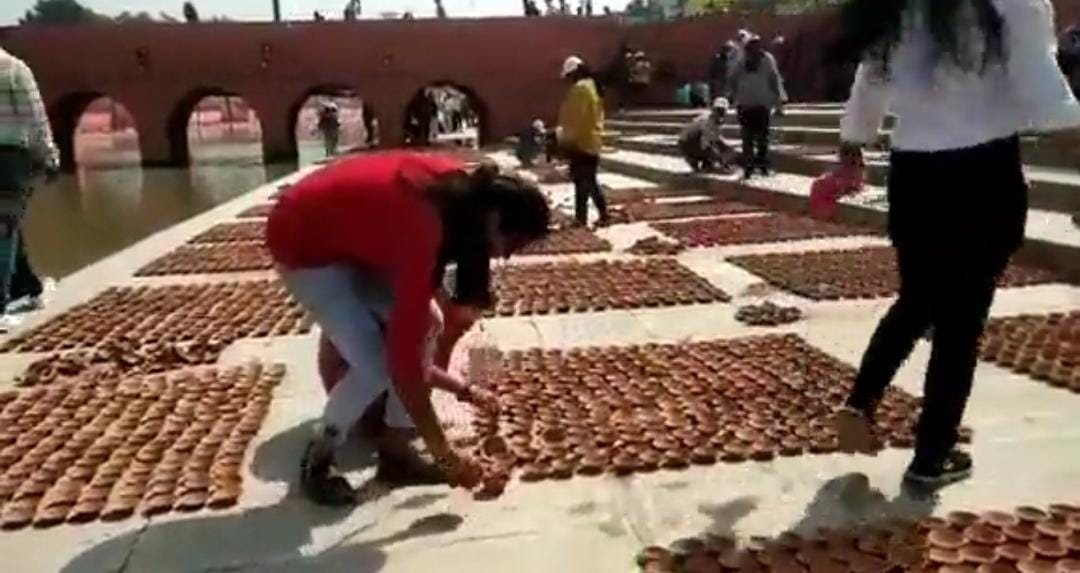 राम नगरी अयोध्या के सरयू तट पर स्थित राम की पैड़ी पर 17 लाख से अधिक दीप जलाए जाने को लेकर अवध विश्वविद्यालय ने वालंटियरों के साथ अधिकारियों ने मोर्चा संभाल लिया है। 22000 वालंटियर राम की पैड़ी पर 17 लाख दीप बिछाए जाने का कार्य हो रहा है। और इन दीपकों को जलाए जाने के लिए रुई की बत्ती हजारों की तादात में मोमबत्ती के साथ तीन हजार टीन तेल यानी 45000 लीटर तेल मंगाया गया है।इस दौरान दीपोत्सव की नोडल अधिकारी प्रो0 अजय प्रताप ने बताया कि हम लोगो ने 17 लाख से ज्यादा दीए जलाने का संकल्प लिया है। 37 घाट कुल है।इन सभी पर दिए का बिछाने का काम कर रहे हैं।और यहाँ शाम तक दिये बिछने का कार्य हर हाल में पूरा करूँगा।उन्होंने कहा कि जिम्मेदारी इतनी बड़ी है।कि हम कह भी नहीं सकते हैं लेकिन इस बार प्रधानमंत्री नरेंद्र मोदी जी और योगी जी यहां पर आ रहे हैं।
