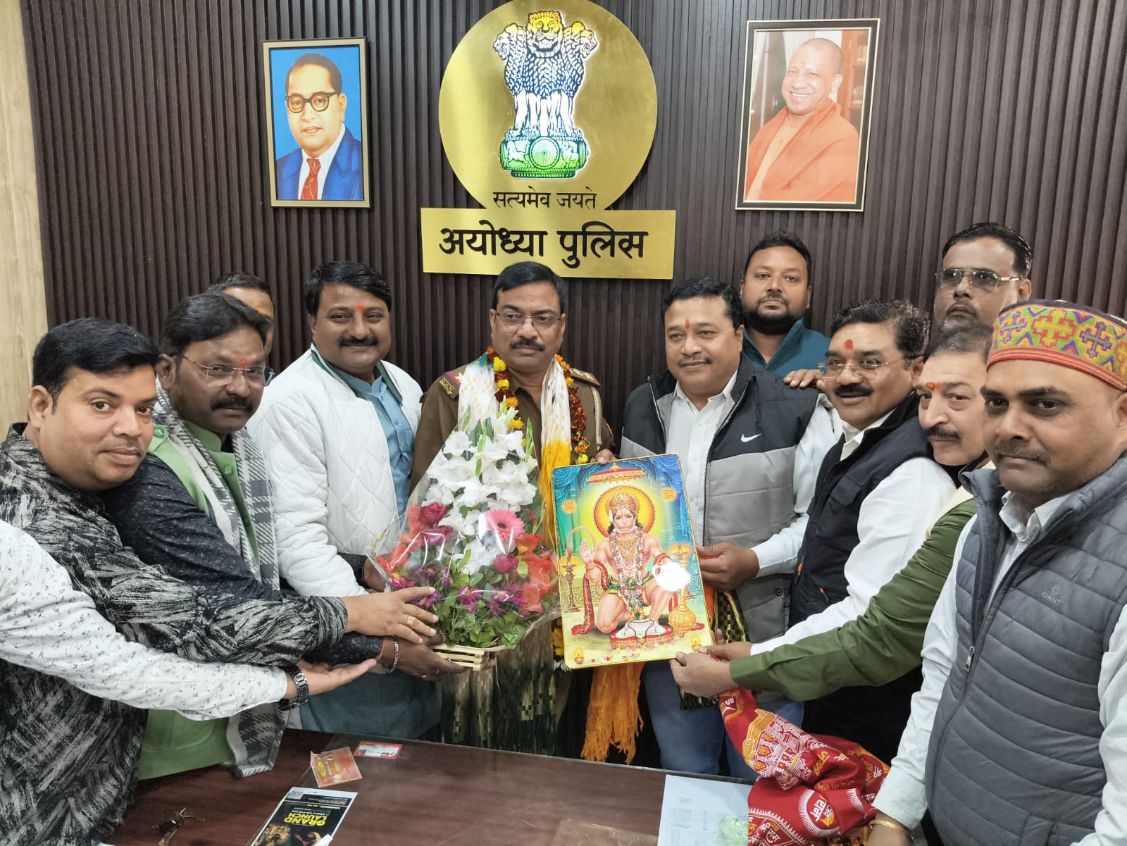 अयोध्या- नवागत कोतवाल पंकज सिंह का व्यापार मंडल ने स्वागत किया।