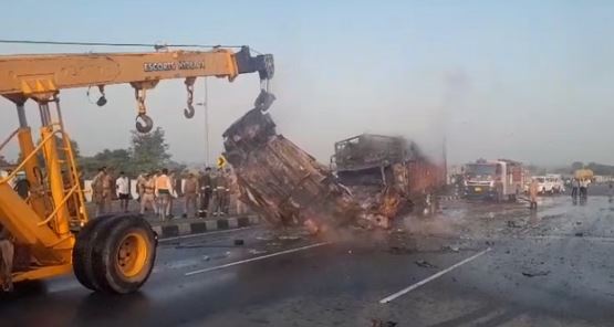 दिल्ली-कानपुर हाईवे पर अकराबाद क्षेत्र में हुए भीषण हादसे में कार सवार चार दोस्तों व कैंटर चालक की जिंदा जलने से मौत हो गई। 23 सितंबर सुबह यह हादसा उस वक्त हुआ, जब सिकंदराराऊ से आती तेज रफ्तार कार का गोपी फ्लाईओवर पर अचानक टायर फट गया। इसके बाद अनियंत्रित हुई कार डिवाइडर लांघकर विपरीत दिशा से आते कैंटर से जा भिड़ी। इस जबरदस्त भिड़ंत और तेज धमाके के साथ दोनों वाहनों में आग लगने पांच की जान चली गई। वहीं कार सवार पांचवां दोस्त जिंदगी मौत से जूझ रहा है।