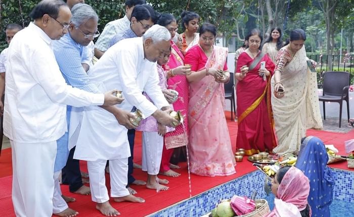 सीएम नीतीश कुमार ने अपने आवास पर दिया भगवान सूर्य को अर्घ्य