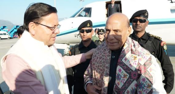 क्षा मंत्री राजनाथ सिंह आज उत्तराखंड दौरे पर पहुंचे। वह वायु सेवा के विशेष विवान से देहरादून एयरपोर्ट पहुंचे।यहां सीएम धामी ने उनका स्वागत किया। इसके कुछ देर बाद वह एमआई 17 हेलीकॉप्टर से मसूरी के लिए रवाना हुए।