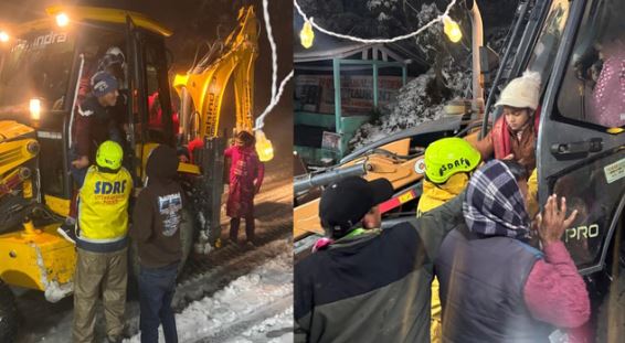 बर्फबारी के कारण फंसे वाहनों व लोगों को सुरक्षित निकाला गया