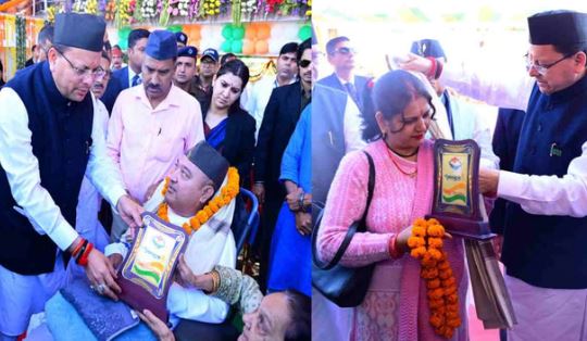 मुख्यमंत्री पुष्कर सिंह धामी ने शनिवार को देहरादून स्थित शहीद स्थल कचहरी परिसर में उत्तराखंड राज्य आंदोलनकारी शहीदों को पुष्पांजलि अर्पित कर उन्हें श्रद्धांजलि दी। राज्य स्थापना के रजत जयंती वर्ष के अवसर पर मुख्यमंत्री ने पुलिस लाइन में आयोजित राज्य आंदोलनकारी सम्मान समारोह में राज्य आंदोलनकारियों और शहीद राज्य आंदोलनकारियों के परिवारजनों को सम्मानित किया।