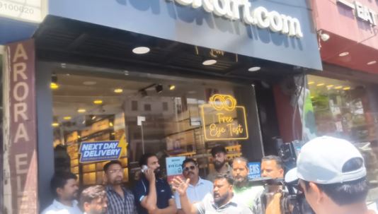 हिंदू रक्षा दल के कार्यकर्ता नेशविला रोड स्थित लेंसकार्ट के शोरूम में पहुंचे और प्रदर्शन किया। इस दौरान उन्होंने कर्मचारियों के माथे पर तिलक लगाकर कलावा बांधा। प्रदर्शन के दौरान संगठन की ओर से 24 घंटे का अल्टीमेटम देते हुए कहा गया कि दून में लेंसकार्ट के सभी शोरूम पर भगवा ध्वज लगाया जाएगा।