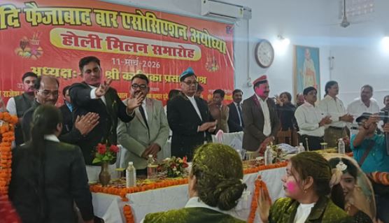 फैजाबाद बार एसोसिएशन अयोध्या की ओर से बुधवार को आचार्य नरेंद्र देव सभागार में होली मिलन समारोह का आयोजन किया गया। इस अवसर पर जनपद न्यायाधीश रणंजय कुमार वर्मा मुख्य अतिथि रहे और उन्होंने अधिवक्ताओं के साथ होली गीत गाए।
