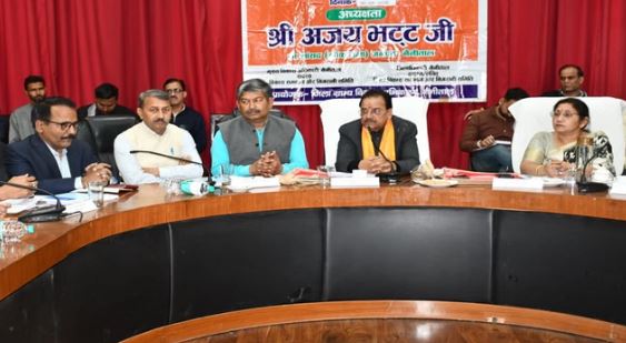 सांसद अजय भट्ट ने नैनीताल क्लब में जिला विकास समन्वय व निगरानी समिति (दिशा) की बैठक की अध्यक्षता की। उन्होंने केंद्र की योजनाओं की समीक्षा कर अधिकारियों को समय पर कार्य पूरे करने के निर्देश दिए। सांसद भट्ट ने अधिकारियों से योजनाओं का लाभ अंतिम छोर तक पहुंचाने को कहा। उन्होंने जनप्रतिनिधियों को विकास कार्यों की जानकारी देने और उनके माध्यम से शुभारंभ कराने को कहा। खराब सड़कों की जांच के निर्देश दिए। रेल विभाग की समीक्षा में बताया गया कि काठगोदाम सहित पांच रेलवे स्टेशनों का 55 करोड़ रुपये की लागत से आधुनिकीकरण किया जा रहा है।