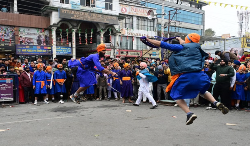हल्द्वानी में गुरु गोविंद सिंह जी के 359वें प्रकाश पर्व के मौके पर शनिवार को रामलीला मैदान स्थित गुरुद्वारा सिंह सभा से भव्य नगर कीर्तन की शुरुआत हुई। नगर कीर्तन तिकोनिया चौराहा, वर्कशॉप लाइन, रोडवेज, रेलवे बाजार, मीरा मार्ग, मंगल पड़ाव सहित प्रमुख मार्गों से होकर शाम को रामलीला मैदान पहुंचा। श्रद्धा और भक्ति के रंग में रंगे सिख समाज ने जगह-जगह गुरु की सेवा में सहयोग किया। पूरे रूट पर तोरणद्वार सजाए गए थे और संगत ने पुष्प वर्षा के साथ लंगर लगाकर सबका स्वागत किया।