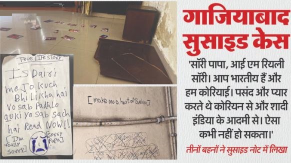 पुलिस के मुताबिक, मोबाइल फोन की लत और कोरियाई लवर गेम से प्रभावित तीनों बहनें फोन छीन लिए जाने से आहत थीं। दिल दहला देने वाली यह घटना साहिबाबाद के टीलामोड़ की भारत सिटी सोसायटी में मंगलवार देर रात करीब दो बजे हुई। पुलिस को किशोरियों के कमरे से पॉकेट डायरी मिली है, जिसमें आठ पेज का सुसाइड नोट लिखा गया है।