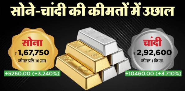 Gold-Silver- चांदी की कीमतों में 10400 रुपये का उछाल, सोना 1.67 लाख रुपये पर पहुंचा, जानें आज का भाव