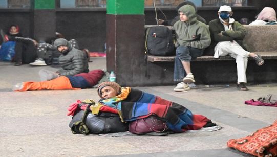 काठगोदाम रेलवे स्टेशन पर बाघ एक्सप्रेस हावड़ा को जाने के लिए प्लेटफार्म नंबर दो पर तैयार खड़ी है। स्टेशन के बाहर अलाव की व्यवस्था नहीं है। हालांकि कोहरा ज्यादा घना नहीं था।