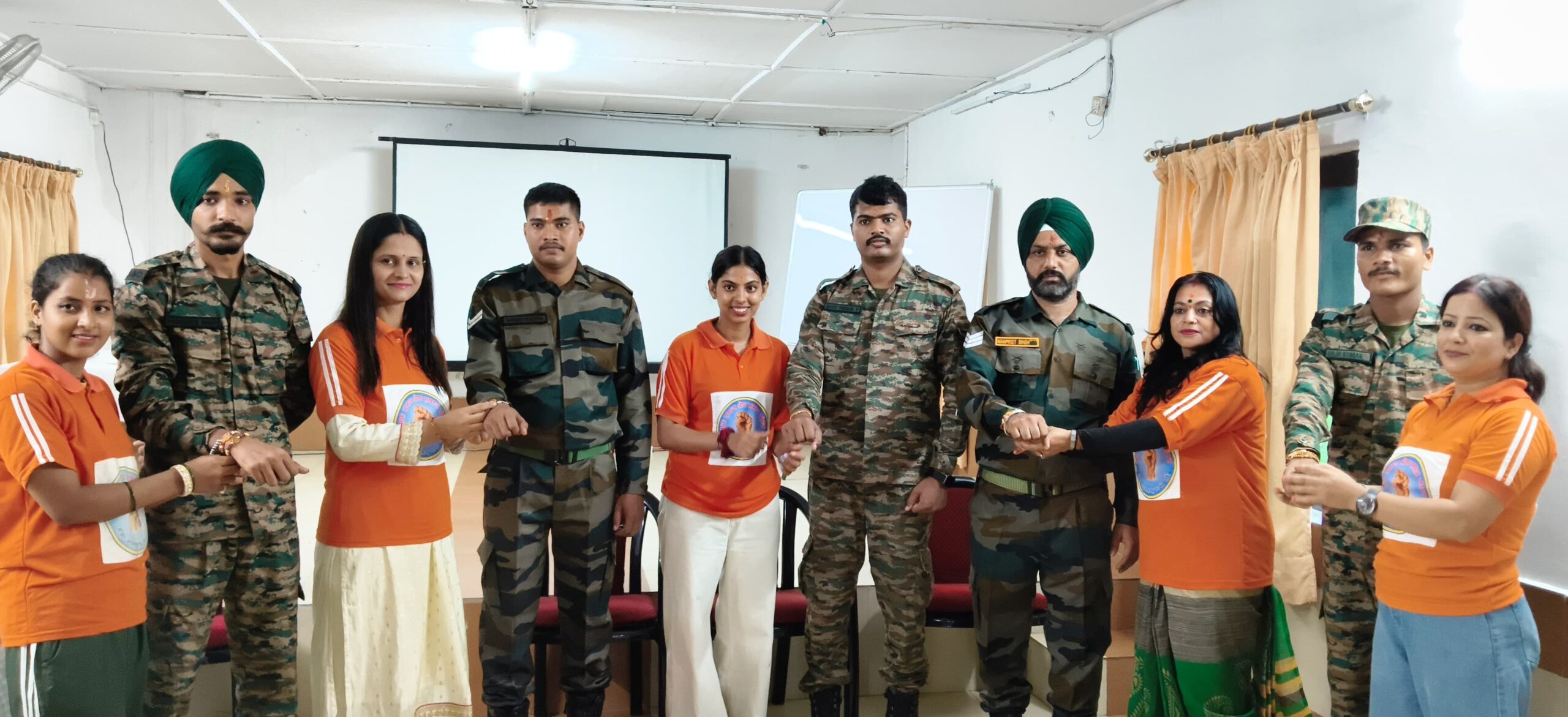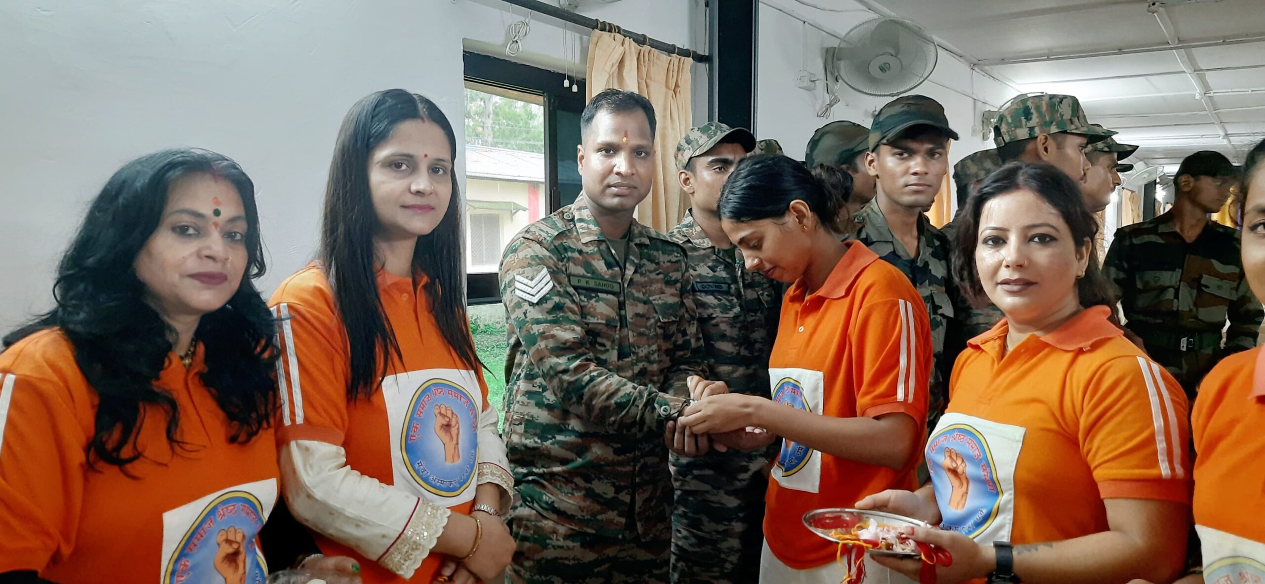 एक समाज श्रेष्ठ समाज संस्था अध्यक्ष योगेन्द्र कुमार साहू सदस्य दिव्यांशी जोशी के नेतृत्व में संस्था के माध्यम से रक्षाबंधन के शुभ अवसर पर अपना घर परिवार छोड़कर रात दिन भारत देश की रक्षा कर रहे भारतीय सेना के जवानों को संस्था महिला पदाधिकारियों ने हल्द्वानी आर्मी कैंट में राखी बांधकर रक्षाबंधन की शुभकामनाएं दी