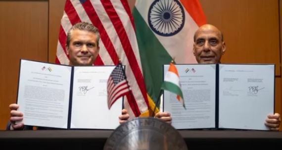 भारत और अमेरिका के बीच एक 10 वर्षीय रक्षा समझौते पर हस्ताक्षर हुए हैं। दोनों देशों के रिश्तों के लिए इसे अहम समझौता बताया जा रहा है। अमेरिका के युद्ध मंत्री ने समझौते पर हस्ताक्षर के बाद कहा कि दोनों देशों के रक्षा संबंध इतने मजबूत कभी नहीं रहे। अमेरिकी युद्ध मंत्री पीट हेगसेथ ने सोशल मीडिया पर साझा एक पोस्ट में बताया कि उनकी भारत के रक्षा मंत्री राजनाथ सिंह से मुलाकात हुई और एक रक्षा समझौते पर हस्ताक्षर हुए। उन्होंने कहा कि भारत और अमेरिका के बीच हुआ समझौता क्षेत्रीय स्थिरता को मजबूत करेगा। उन्होंने कहा कि सूचनाएं साझा करने, तकनीकी सहयोग बढ़ाने में हम अपने समन्वय को बेहतर कर रहे हैं।