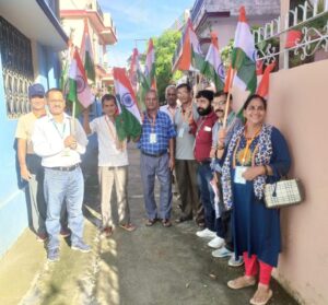 आजादी के अमृत महोत्सव के अवसर पर देश के यशस्वी प्रधानमंत्री आदरणीय श्री नरेंद्र मोदी जी एवं प्रदेश के युवा एवं लोकप्रिय मुख्यमंत्री आदरणीय श्री पुष्कर सिंह धामी जी के आह्वान पर हर घर तिरंगा अभियान के अंतर्गत आज *सारथी फाउंडेशन समिति* के द्वारा घर घर तिरंगा अभियान के तहत व्युरा बंदोबस्ती के शिवालिक पुरम, गायत्री नगर में घूमते हुए देश भक्ति के धुनों पर भारत माता की जय के नारे लगाए और जनजागरण कर तिरंगा ध्वज लगाने के लिए प्रेरित कर गलियों में भ्रमण किया और सभी के घरों पर तिरंगा लगवाया। साथ ही छोटे छोटे बच्चों के साथ सेल्फी भी ली गई।
