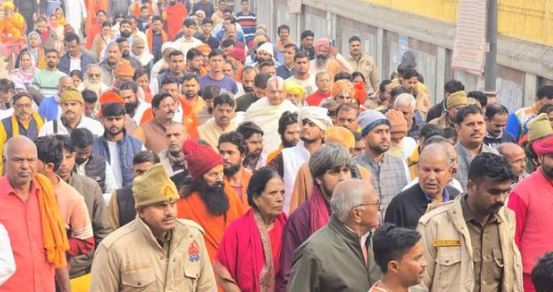 मध्य प्रदेश के रीवा से सोमवार रात जैसे ही डॉ. वेदांती का पार्थिव शरीर अयोध्या स्थित उनके आश्रम हिंदू धाम पहुंचा, श्रद्धांजलि अर्पित करने वालों का तांता लगना शुरू हो गया। मंगलवार को भी सुबह से ही कुछ इसी तरह का दृश्य रहा। हिंदू धाम में श्रद्धालुओं, संतों और आमजन का जमावड़ा रहा। दोपहर बाद जैसे ही अंतिम यात्रा शुरू हुई, पूरा नगर मानो ठहर गया। फूलों से सजे रथ पर पार्थिव शरीर को विराजमान करने के साथ नगर भ्रमण कराया गया। हर गली, हर चौराहा स्व. वेदांती के जयकारों से गूंज उठा। लोगों ने पुष्पवर्षा कर अपने प्रिय नेता और मार्गदर्शक को अंतिम प्रणाम किया।