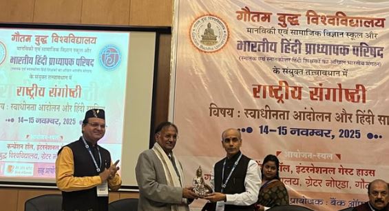 हल्द्वानी। गौतम बुद्ध विश्वविद्यालय एवं भारतीय हिंदी प्राध्यापक परिषद के संयुक्त तत्वावधान में दो दिवसीय राष्ट्रीय हिंदी संगोष्ठी का उद्घाटन समारोह मुक्त विश्वविद्यालय परिसर में आयोजित किया गया। इस अवसर पर देशभर से आए हिंदी प्राध्यापकों, शोधार्थियों और साहित्यकारों ने सहभागिता की। संगोष्ठी के उद्घाटन सत्र में विश्वविद्यालय के कुलपति प्रो.राणा प्रताप सिंह ने कहा कि हिंदी साहित्य ने स्वाधीनता संग्राम को शब्दों, विचारों और संघर्ष की लौ से जीवित रखा है। यह साहित्य समाज को नई दिशा देने वाला माध्यम रहा है। उन्होंने हिंदी साहित्य के मूल संदर्भों और उसकी ऐतिहासिक भूमिका पर विस्तार से प्रकाश डाला। मुक्त विवि के कुलपति प्रो.नवीन चंद्र लोहनी ने क्षेत्रीय कवियों की सक्रिय भूमिका पर प्रकाश डाला। इस मौके पर कुलपति प्रो.लोहनी को सारस्वत सम्मान से सम्मानित किया गया।