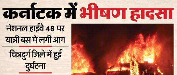पुलिस ने बताया कि बंगलूरू सेजा रही निजी स्लीपर कोच बस को एक ट्रक ने सामने से टक्कर मार दी और उसमें तुरंत आग लग गई। पुलिस ने बताया कि चित्रदुर्ग जिले के हिरियूर तालुक में गोरलाथु क्रॉस के पास राष्ट्रीय राजमार्ग 48 पर यह सड़क दुर्घटना हुई।