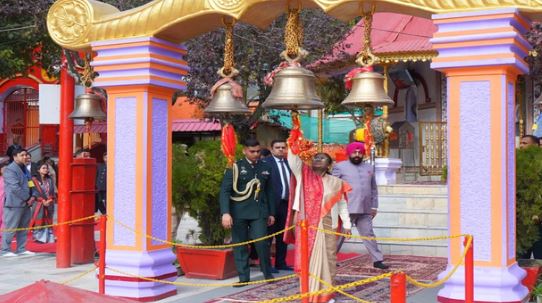 राष्ट्रपति द्रौपदी मुर्मू ने मंगलवार को अपने नैनीताल प्रवास के दौरान मां नयना देवी मंदिर में पूजा-अर्चना की और राष्ट्र की सुख-शांति एवं खुशहाली की कामना की। मंदिर पहुंचने पर राष्ट्रपति मुर्मू का मंदिर समिति के सदस्यों ने पारंपरिक रूप से पुष्पगुच्छ भेंट कर स्वागत व अभिनंदन किया।