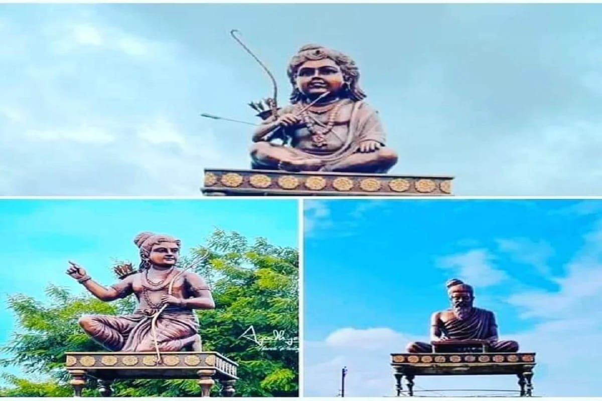 नेशनल हाईवे पर लगाई जा रही प्रतिमा