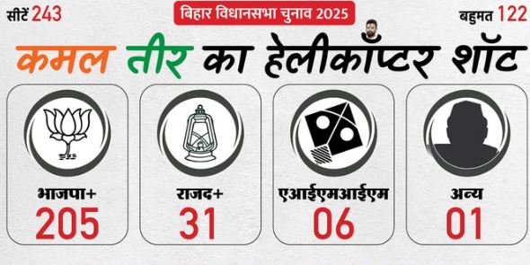 बिहार विधानसभा चुनाव के रुझानों में एनडीए बंपर जीत की तरफ बढ़ रहा है। राजद के नेतृत्व में महागठबंधन का बुरा हाल है। साफ है कि बिहार की जनता ने पीएम मोदी और नीतीश कुमार के नेतृत्व में एक बार फिर विश्वास जताया है। राजद, कांग्रेस और जनसुराज का क्या है हाल?