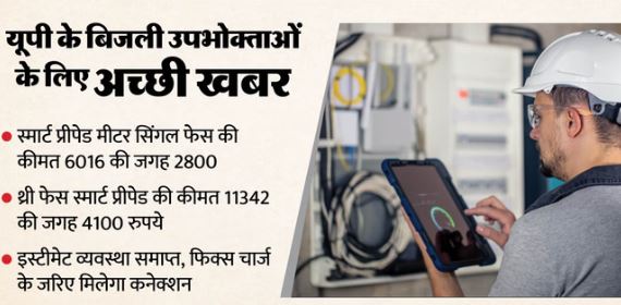 साथ ही एस्टीमेट बनाने की व्यवस्था भी समाप्त कर दी गई है। नई व्यवस्था के तहत सिंगल फेज स्मार्ट प्रीपेड मीटर की कीमत 6016 रुपये से घटाकर 2800 रुपये कर दी गई है। वहीं, थ्री फेज स्मार्ट प्रीपेड मीटर अब 11342 रुपये की जगह 4100 रुपये में लगाया जाएगा।