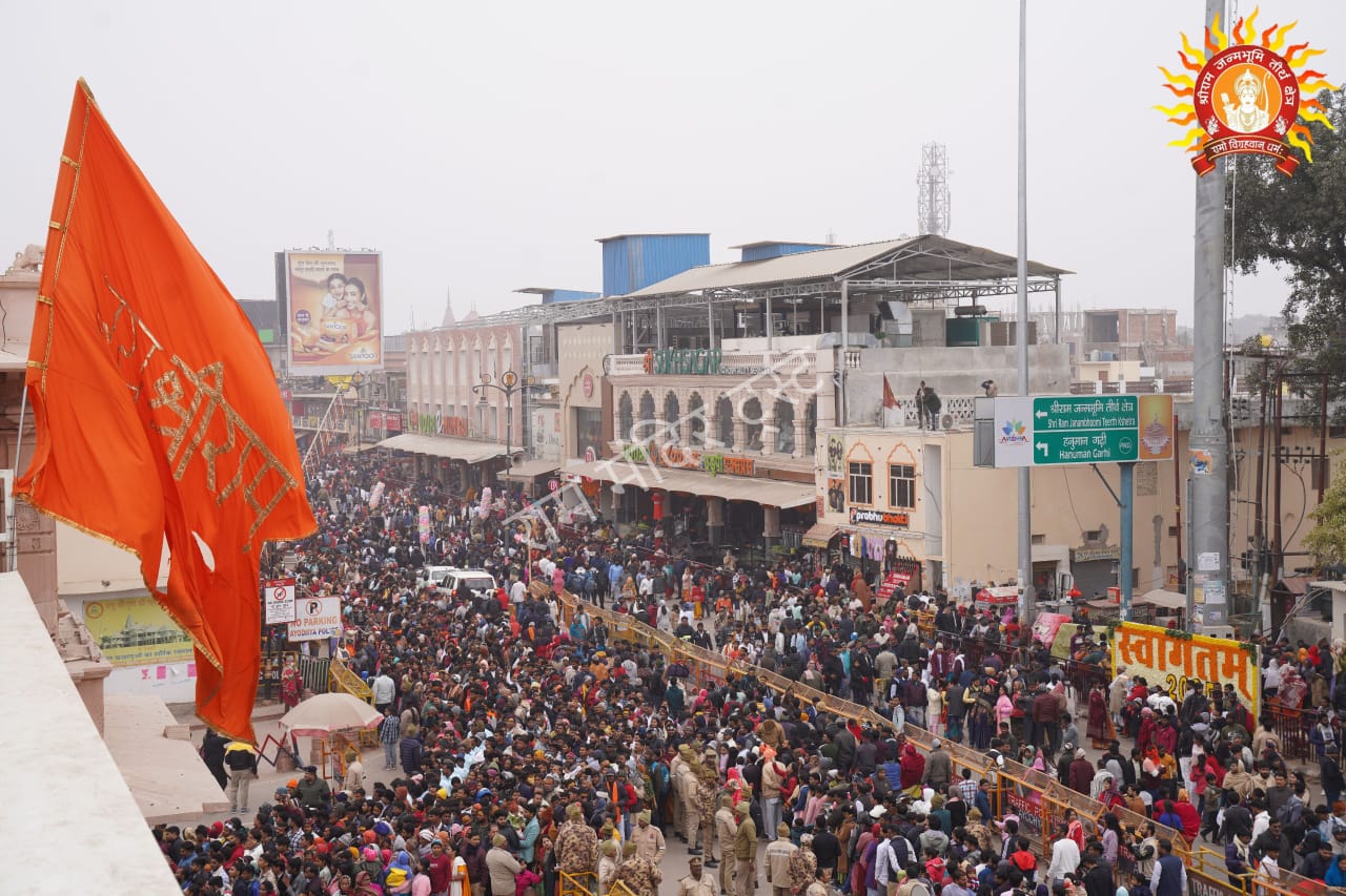 1 जनवरी 2025 को राम मंदिर में दर्शन हेतु पहुंचे श्रद्धालुओं की आपार अद्भुत भीड़ के साथ ही जय श्रीराम का उदघोष करते हुए सुरक्षा कर्मियों ने अपनी सुदृढ़ सुरक्षा व्यवस्था के साथ उनको दर्शन करवाये,मंदिर प्रांगण का दृश्य राममय तिल रखने की भी छगह नही।