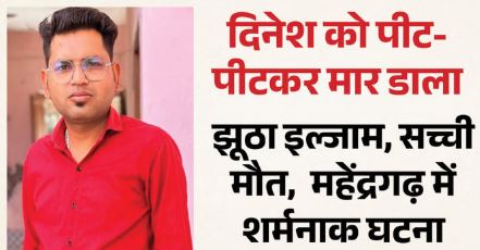 हरियाणा के महेंद्रगढ़ के गुढ़ा गांव निवासी फाइनेंसर दिनेश शर्मा (33) को कुछ युवकों ने बुधवार को किडनैप कर पीट-पीटकर मार डाला। उसकी बहन नीतू ने बताया कि आरोपी ने…