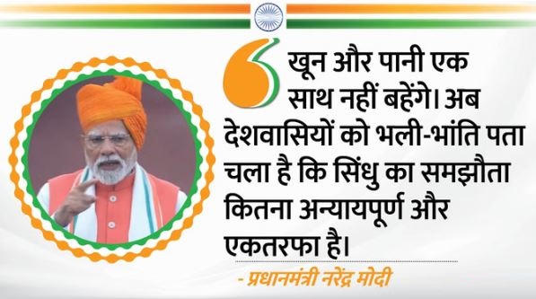 पीएम मोदी ने कहा, ‘खून और पानी एक साथ नहीं बहेंगे। अब देशवासियों को भली-भांति पता चला है कि सिंधु का समझौता कितना अन्यायपूर्ण और एकतरफा है। भारत से निकलती नदियों का पानी दुश्मनों के खेतों को सींच रहा है और मेरे देश की धरती बिना पानी के प्यासी है। कैसा समझौता था, जिसने पिछले सात दशक से मेरे देश के किसानों का अकल्पनीय नुकसान किया है। हिंदुस्तान के हक का जो पानी है। उस पर अधिकार सिर्फ और सिर्फ हिंदुस्तान का है। हिंदुस्तान के किसानों का है। भारत कतई सिंधु समझौते को जिस स्वरूप में सहता रहा है, उसे नहीं सहेगा। किसान हित में और राष्ट्रहित में यह समझौता हमें मंजूर नहीं है।’