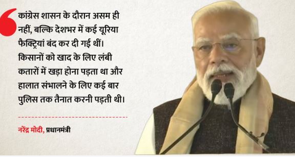 प्रधानमंत्री मोदी ने अपने संबोधन में कांग्रेस पर तीखा हमला बोला। उन्होंने कहा कि कांग्रेस की नीतियों ने दशकों तक किसानों की स्थिति को बदतर बनाया, जबकि उनकी सरकार किसानों को सशक्त बनाने के लिए लगातार काम कर रही है। पीएम ने कहा कि खाद कारखाने जैसे प्रोजेक्ट न केवल किसानों को सस्ती खाद उपलब्ध कराएंगे, बल्कि क्षेत्र में रोजगार और औद्योगिक विकास को भी बढ़ावा देंगे। कांग्रेस शासन के दौरान असम ही नहीं, बल्कि देशभर में कई यूरिया फैक्ट्रियां बंद कर दी गई थीं। इसके चलते किसानों को खाद के लिए लंबी कतारों में खड़ा होना पड़ता था और हालात संभालने के लिए कई बार पुलिस तक तैनात करनी पड़ती थी। पीएम मोदी ने कहा कि उस समय किसानों को इतनी परेशानी झेलनी पड़ी कि कहीं-कहीं लाठीचार्ज तक की नौबत आ जाती थी। उन्होंने आरोप लगाया कि कांग्रेस सरकार ने किसानों की जरूरतों को नजरअंदाज किया।