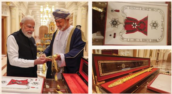प्रधानमंत्री नरेंद्र मोदी को ओमान के सर्वोच्च नागरिक सम्मान ‘ऑर्डर ऑफ ओमान’ से नवाजा गया है। इसके साथ ही उन्हें अब तक 29 देशों के सर्वोच्च विदेशी नागरिक सम्मान मिल चुके हैं। यह सम्मान न केवल प्रधानमंत्री मोदी की व्यक्तिगत कूटनीति को दर्शाता है, बल्कि वैश्विक मंच पर भारत की बढ़ती ताकत और प्रभाव का भी संकेत देता है।