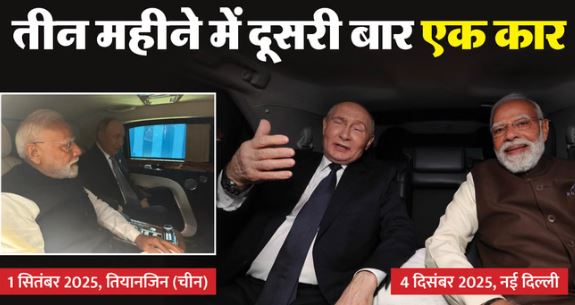 इससे पहले सितंबर में तियानजिन शहर में प्रधानमंत्री नरेंद्र मोदी और राष्ट्रपति व्लादिमीर पुतिन जब एक ही कार में सवार होकर शिखर सम्मेलन में शामिल हुए थे। उस समय वैश्विक कूटनीति की सभी औपचारिकताओं को पीछे छोड़ दिया था। आज एक बार फिर दोनों नेता एक साथ कार में नजर आए। पीएम मोदी और राष्ट्रपति पुतिन की इस भारत यात्रा पर पूरी दुनिया का निगाहें हैं।