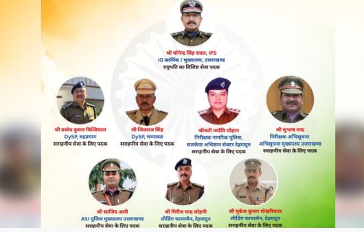 ईजी डॉ. योगेंद्र सिंह रावत और डॉ. सदानंद दाते समेत उत्तराखंड पुलिस के नौ अधिकारियों और कर्मचारियों को राष्ट्रपति पदक दिए जाएंगे। इनमें से आईजी डॉ. रावत और डॉ. दाते को विशिष्ट सेवा के आधार पर पदक दिया जाएगा।