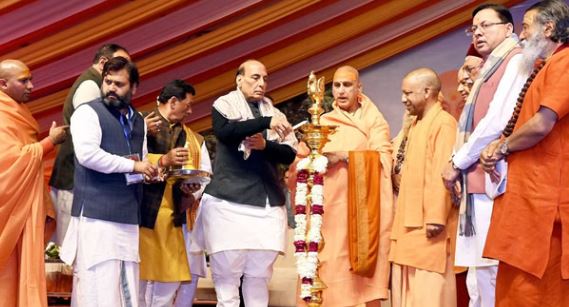 हरिद्वार- मंदिर स्थापना समारोह में बोले राजनाथ, तलवार और सत्ता से नहीं ऋषियों की कुटिया से बना है राष्ट्र