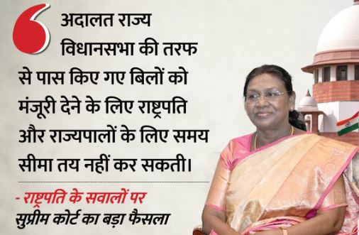 8 अप्रैल को सुप्रीम कोर्ट ने तमिलनाडु विधानसभा से पास हुए बिलों पर फैसला देते हुए पहली बार यह कहा था कि राष्ट्रपति को राज्यपाल की तरफ से भेजे गए किसी भी बिल पर तीन महीने के भीतर निर्णय लेना होगा। यह फैसला अपने आप में ऐतिहासिक माना गया क्योंकि इससे पहले ऐसी कोई समय सीमा तय नहीं थी।
