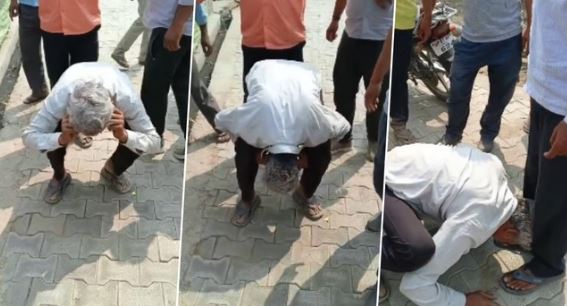 बुजुर्ग के अनुसार आठ मार्च को दूसरे पक्ष के विवेक, विवेक के पिता मनोज उर्फ पप्पू, छुन्ने और विक्कू आकर गाली-गलौज करने लगे। इस दौरान मौके पर लोगों की भीड़ लग गई। आरोपियों ने बुजुर्ग को मुर्गा बना दिया और उनका सिर अपने पैरों पर रखवाकर माफी मंगवाई। इस बीच किसी ने घटनाक्रम का वीडियो बना लिया और एक-दूसरे को भेजना शुरू कर दिया। अधिकारियों ने पूछताछ शुरू की तो पुलिस बुजुर्ग को घर से थाने लाई और तहरीर लेकर रिपोर्ट दर्ज कर ली है। बुजुर्ग के अनुसार 13 मार्च को उनके खेती के साझीदार से भी आरोपियों ने मारपीट की है। थाना प्रभारी रवि करन सिंह ने बताया कि बुजुर्ग की तहरीर पर विवेक, मनोज उर्फ पप्पू, छुन्ने और विक्कू पर रिपोर्ट दर्ज कर ली गई है।