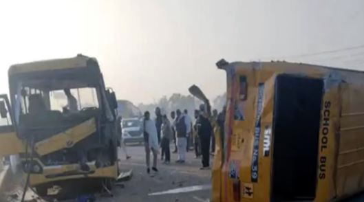 जींद-रोहतक नेशनल हाईवे 71 पर सोमवार सुबह पौने आठ बजे दो स्कूल बस आपस में टकरा गई। टक्कर से एक बस पलट गई जबकि दूसरी बस का अगला हिस्सा क्षतिग्रस्त हो गया। टक्कर में छह स्कूली छात्र व दो लोग घायल हो गए। दो छात्रों को पीजीआई के ट्रामा सेंटर में भेजा गया है, बाकि को मामूली चोटें आई है। लाखनमाजरा पुलिस हादसे की जांच कर रही है।