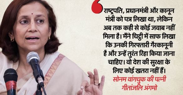 बातचीत के दौरान गीतांजलि ने साफ-साफ कहा कि मैंने चिट्ठी में साफ लिखा कि उनकी गिरफ्तारी गैरकानूनी है और उन्हें तुरंत रिहा किया जाना चाहिए। वो देश की सुरक्षा के लिए कोई खतरा नहीं हैं। अंगमो ने कहा कि मैंने उनसे मिलने की अनुमति भी मांगी थी, लेकिन कोई जवाब नहीं आया। इसी वजह से हमें सुप्रीम कोर्ट में हैबियस कॉर्पस याचिका दायर करनी पड़ी।