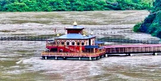 भारी बारिश के कारण अलकनंदा नदी का जलस्तर इतना बढ़ गया है कि यह धारी देवी मंदिर तक पहुंच गया। मंदिर परिसर के बाहर बनी पुरानी अस्थायी दुकानों में पानी घुस गया है। समिति सदस्य राजेश पांडे ने बताया कि सुबह पांच बजे मंदिर समिति को जलस्तर बढ़ने की खबर मिली। सूचना मिलते ही वे रमेशचंद्र पांडे और विवेक पांडे के साथ मौके पर पहुंचे तो नदी का रौद्र रूप देखकर घबरा गए। उन्होंने बताया कि जीवीके डैम के गेट खोलने के बावजूद जलस्तर कम नहीं हुआ।