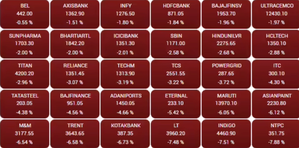 तेज गिरावट के चलते बाजार पूंजीकरण में भी भारी गिरावट दर्ज की गई। कारोबार शुरू होने के शुरुआती कुछ ही मिनटों में निवेशकों की संपत्ति में ₹8 लाख करोड़ से अधिक की कमी आ गई, क्योंकि बीएसई में सूचीबद्ध कंपनियों का कुल मार्केट कैप पिछले सत्र के ₹463.50 लाख करोड़ से घटकर करीब ₹455 लाख करोड़ पर आ गया।