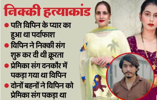 ग्रेटर नोएडा के दादरी थाना इलाके की निक्की भाटी की हत्या कर रास्ते से हटाने की पटकथा जून-2024 में लिख दी गई थी। दनकौर से पति विपिन को प्रेमिका के साथ पकड़कर सिरसा गांव में परिवार को सौंपा गया था। इसे लेकर परिवार और रिश्तेदारों ने विपिन को खरी-खोटी सुनाई थी।