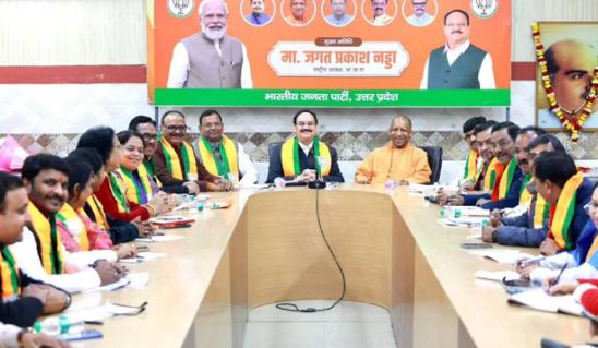 राजधानी लखनऊ में शनिवार को भाजपा कार्यालय में एक बड़ी बैठक आयोजित की गई है। इसमें केंद्रीय स्वास्थ्य मंत्री जेपी नड्डा, मुख्यमंत्री योगी आदित्यनाथ और यूपी प्रदेश अध्यक्ष पंकज चौधरी समेत अन्य नेता शामिल हुए। पंकज चौधरी के प्रदेश अध्यक्ष बनने के बाद यह पहली बैठक थी, जो प्रदेश कार्यालय में आयोजित की गई।