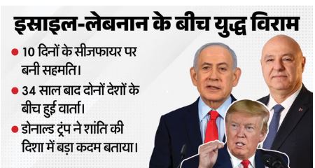 इस्राइल-लेबनान में 10 दिन का सीजफायर-: ट्रंप का दावा- शांति की दिशा में बड़ा कदम