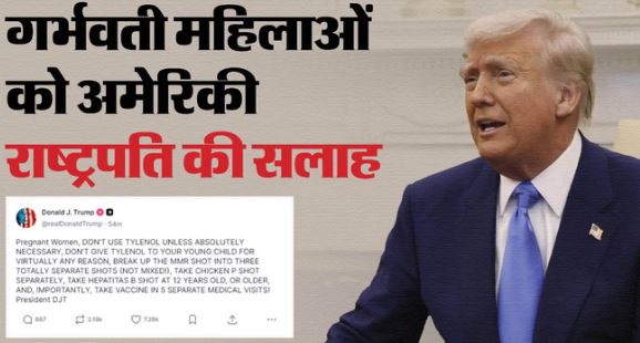 अमेरिकी राष्ट्रपति डोनाल्ड ट्रंप ने ट्रुथ सोशल पर लिखा कि गर्भवती महिलाएं जब तक बिल्कुल जरूरी न हो टाइलेनॉल का इस्तेमाल न करें। अपने छोटे बच्चे को किसी भी कारण से टाइलेनॉल न दें। एमएमआर वैक्सीन को तीन अलग-अलग वैक्सीन में बांटें। चिकन पेक्टिन वैक्सीन अलग से लें। हेपेटाइटिस बी वैक्सीन 12 साल या उससे ज़्यादा उम्र में लें। सबसे जरूरी बात वैक्सीन को पांच अलग-अलग मेडिकल विजिट में लगवाएं।