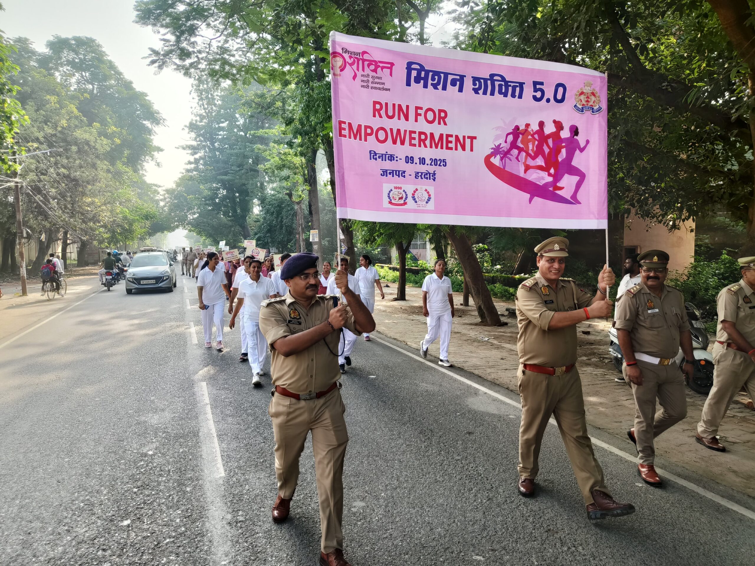 त्तर प्रदेश शासन द्वारा संचालित ‘मिशन शक्ति फेज 5.0’ के अंतर्गत महिला सुरक्षा, सम्मान एवं सशक्तिकरण के प्रति जनजागरूकता बढ़ाने एवं समाज में सकारात्मक संदेश देने के उद्देश्य से आज दिनांक 09.10.2025 को रिजर्व पुलिस लाइन हरदोई से अम्बेडकर पार्क तक भव्य RUN FOR EMPOWERMENT — Women Marathon का आयोजन किया गया ।